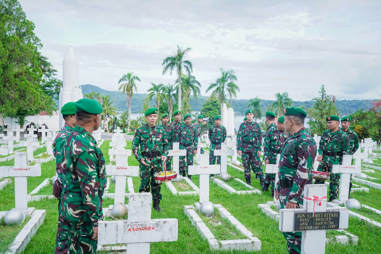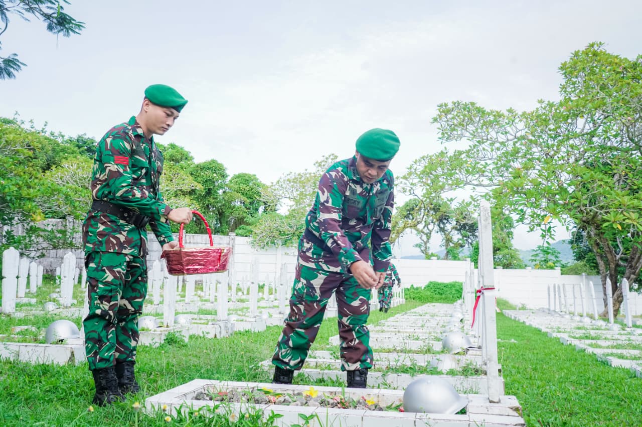 Kegiatan diawali dengan ziarah rombongan ke taman makam pahlawan Kapahaha Ambon, yang dipimpin oleh Kainfolahtadam XV/Ptm Kolonel Czi Decky Arie Sandie dan diikuti oleh seluruh personel beserta Ibu Persit. Upacara berlangsung dengan khidmat, diawali dengan penghormatan kepada arwah para pahlawan, peletakan karangan bunga, serta dilanjutkan dengan prosesi tabur bunga di pusara para pahlawan. Kegiatan ini menjadi momentum untuk mengenang jasa-jasa para pejuang yang telah berkorban demi bangsa dan negara, serta menumbuhkan semangat pengabdian bagi seluruh prajurit.