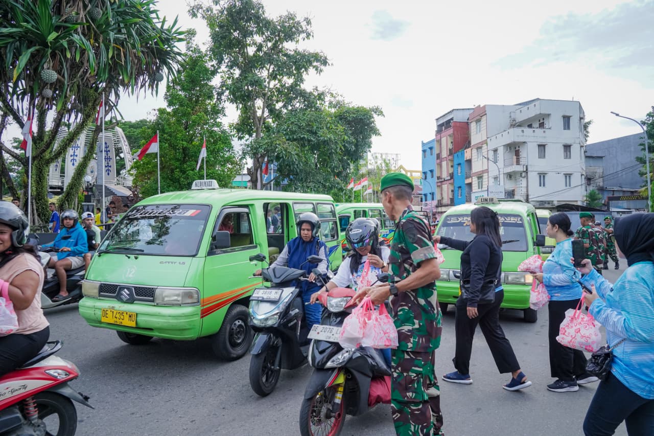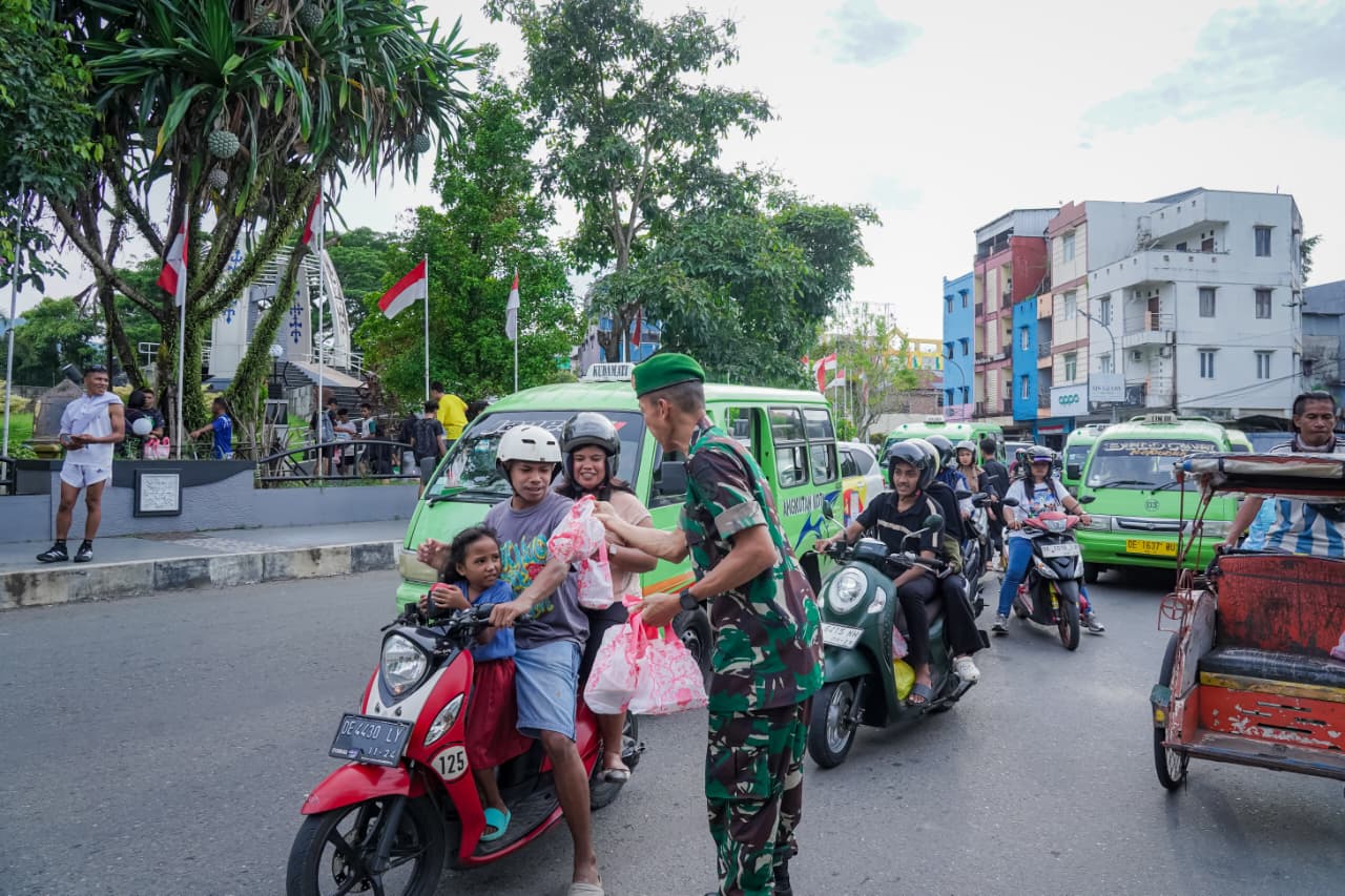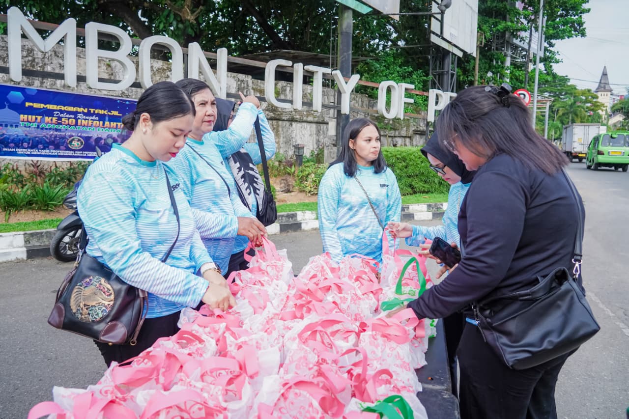 Setelah pelaksanaan ziarah, rangkaian kegiatan dilanjutkan dengan pembagian takjil kepada masyarakat dan pengguna jalan dengan mengambil lokasi pada belakang Tugu Monumen Gong Perdamaian Maluku. Personel Infolahta secara langsung membagikan paket takjil kepada masyarakat yang melintas, sebagai bentuk kepedulian dan kebersamaan di bulan suci Ramadan. Kegiatan ini disambut dengan antusias oleh masyarakat yang merasa terbantu dan mengapresiasi kepedulian yang ditunjukkan oleh para Prajurit, Pns dan Ibu Persit.